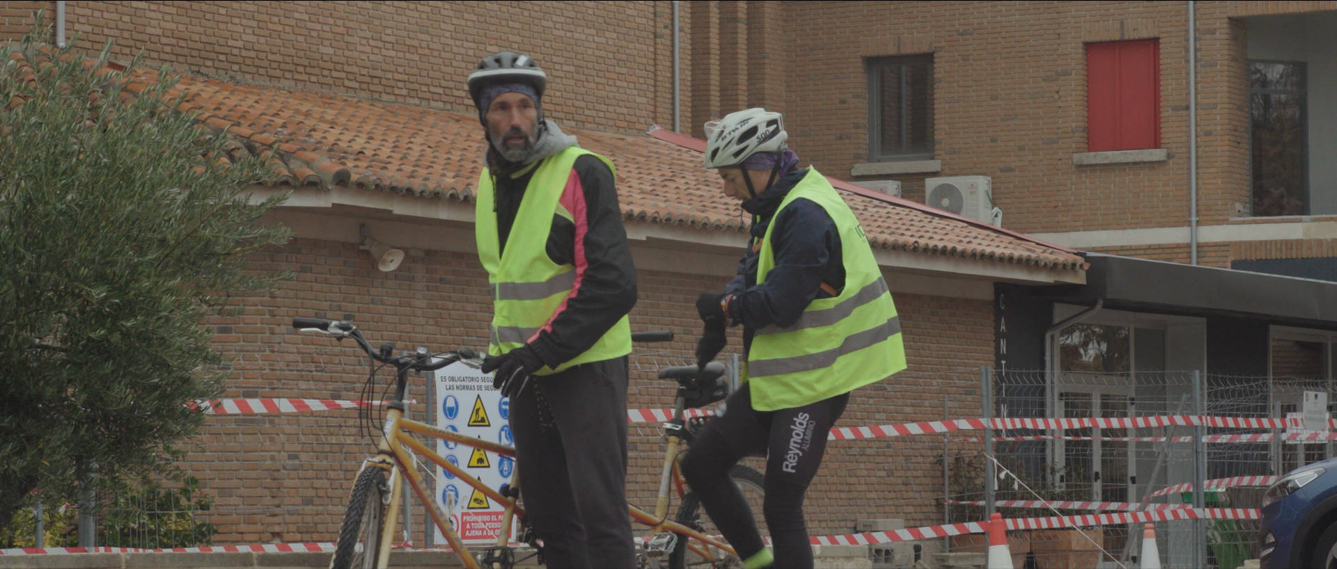 David y Pablo, responsables del Plan Verde de un colegio de Madrid se disponen a recorrer 100 kilómetros con un viejo tándem. Se trata de un reto destinado a recaudar fondos suficientes para comprar un tándem nuevo para la escuela.
